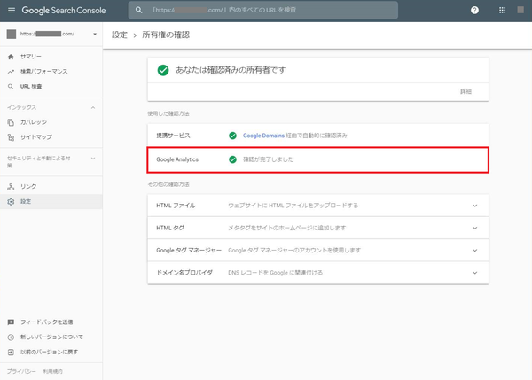 ⑤使用した確認方法に「Google Analytics」が追加されたことを確認します。