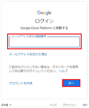 Google Cloud Platform にて登録手続きを行います。